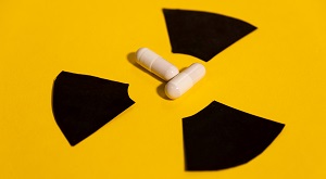Schilddrüsenkrebs kann durch eine Akkumulation von radioaktivem Jod in der Schilddrüse verursacht werden. Um dies zu verhindern, sollten Jodtabletten in hohen Dosen kurz vor oder unmittelbar nach der Exposition eingenommen werden [3, 4]. Die Bundesregierung hält für den Katastrophenfall 189,5 Millionen hochdosierte Kaliumiodid-Tabletten zur Ausgabe an die Bevölkerung auf Lager. Von einer präventiven Einnahme von hochdosiertem Kaliumiodid ohne nuklearen Notfall sollte abgesehen werden. Dies kann zu unerwünschten Arzneimittelwirkungen führen, ohne jeglichen Nutzen [5]. Kaliumiodid als Antidot ist mit 65 mg Kaliumiodid/Tablette (50 mg Jodid) um ein Vielfaches höher dosiert (2 Tabletten als Einzeldosis, entsprechend 100 mg Jodid) als Arzneimittel, die als Jodsubstitutionstherapie eingesetzt werden mit meist 0,1 bis 0,2 mg Jodid [6].